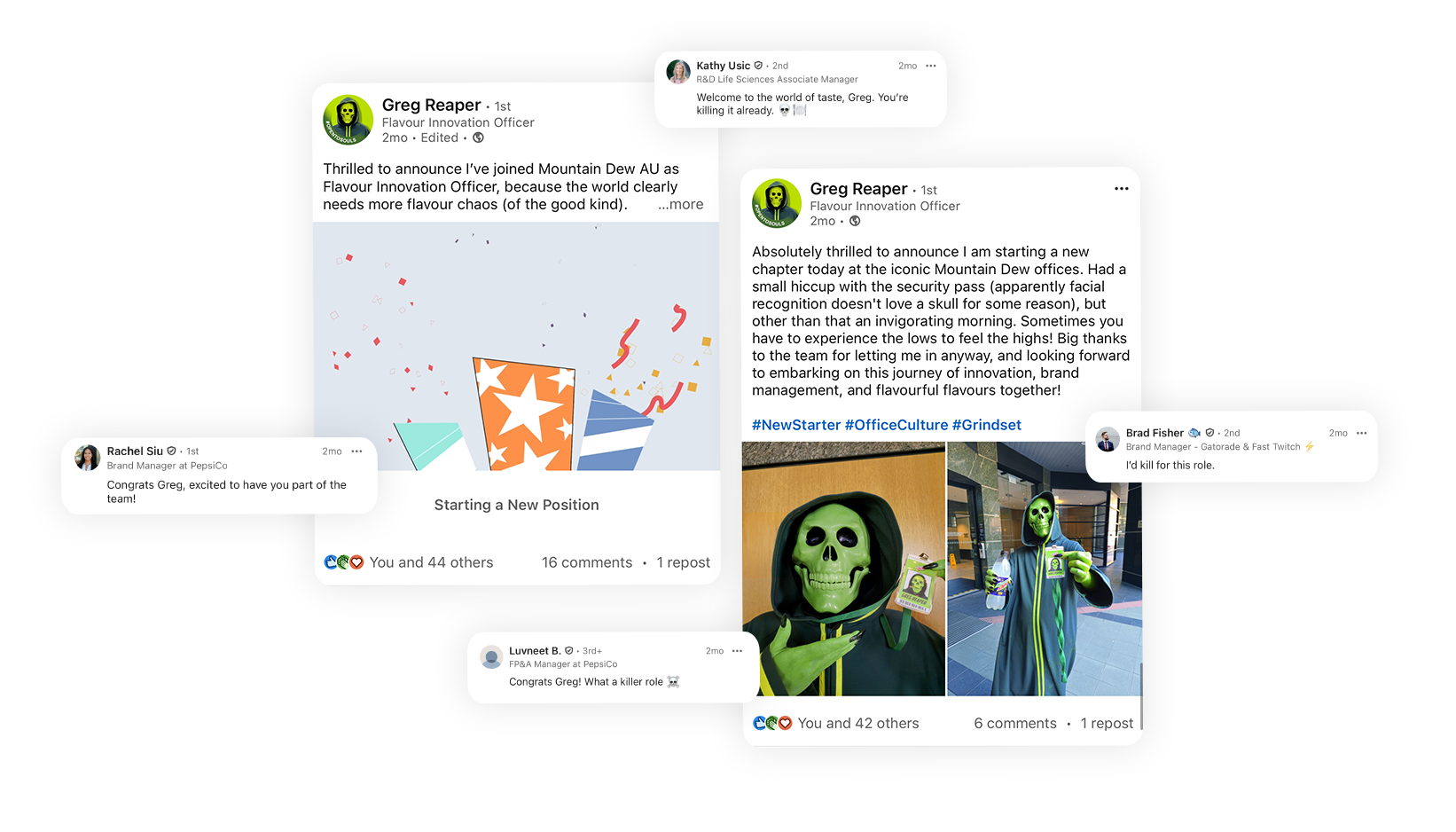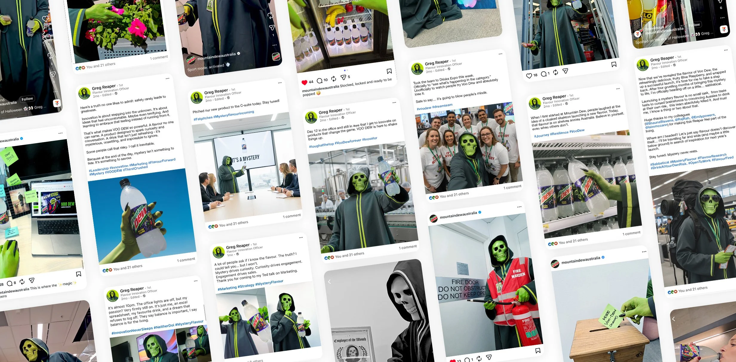You bring the grim reaper to life as Greg Reaper, Flavour Innovation Officer (an official Mountain Dew employee with a linkedin page), and unleash him on the PepsiCo office to drop the next big mystery flavour.