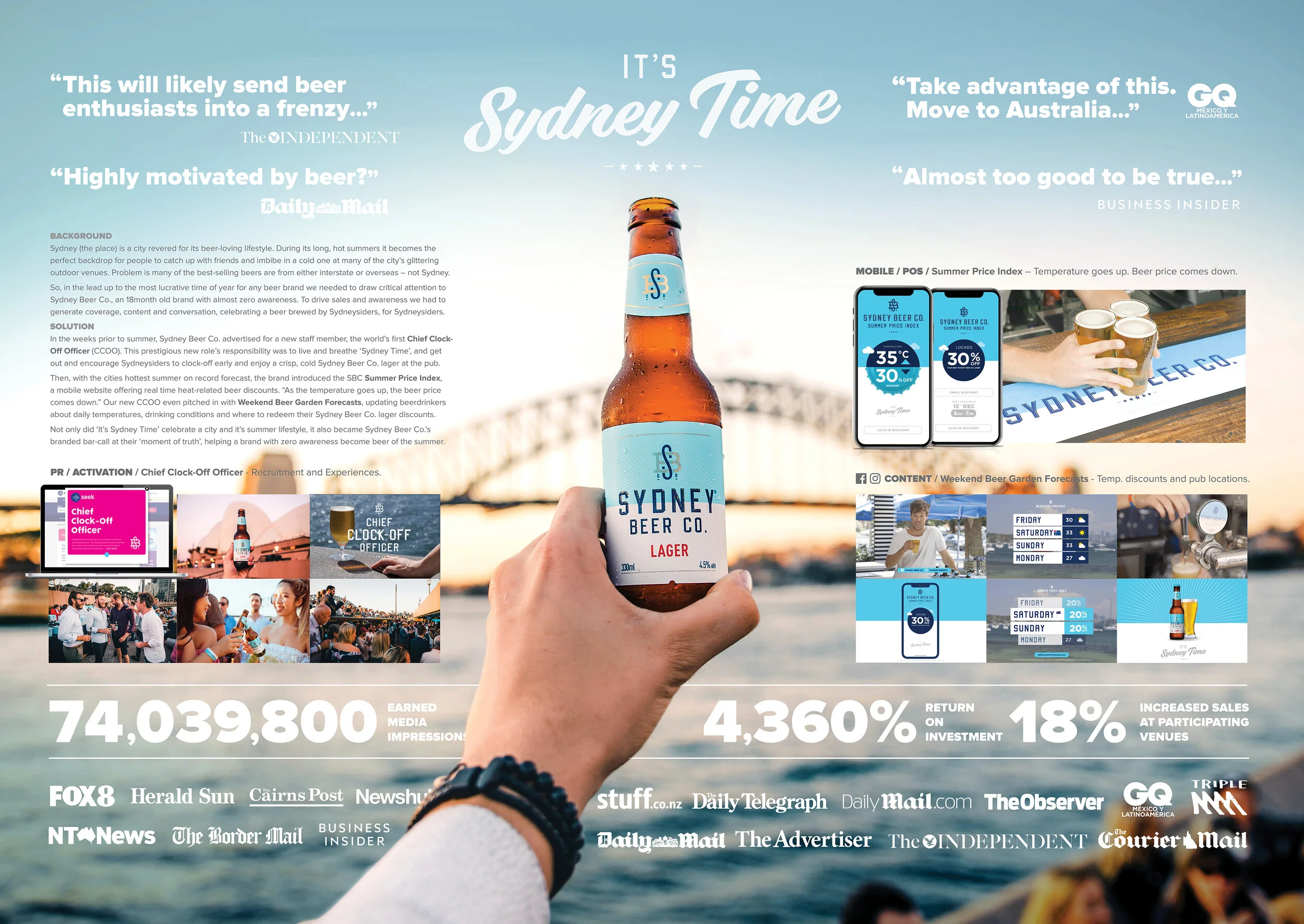 The Chief Clock-Off Officer’s job was to encourage Sydneysiders to get out and explore all that Sydney (the place) had to offer over summer. They helped people enjoy a Sydney (the beer) against the backdrop of the beautiful city.